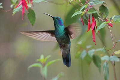 Green Violet-Ear Hummingbird Foraging, Costa Rica